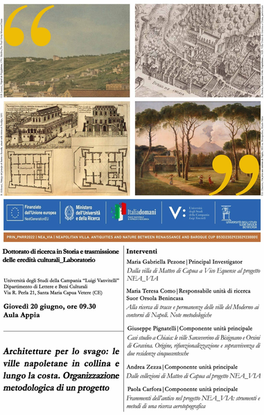 Maria Gabriella Pezone, Principal Investigator del progetto, e Giuseppe Pignatelli Spinazzola presenteranno il PRIN PNRR 2022 Nea_Via nell’ambito della rassegna Storie in movimento. Dialoghi e Percorsi sulle Vite del Patrimonio Culturale Diffuso.